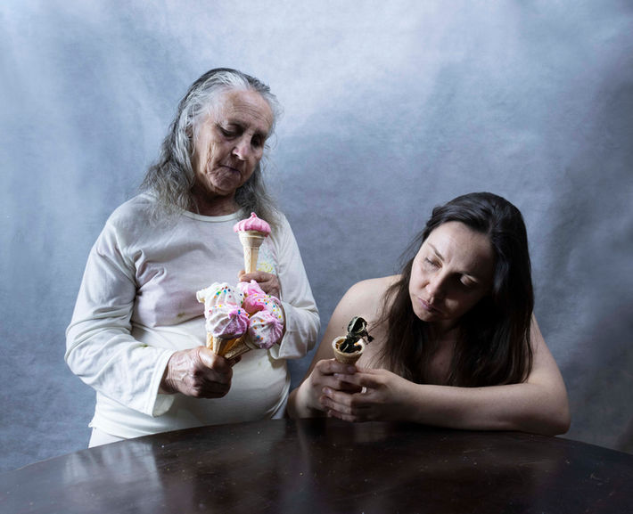 Em 'Doces Bárbaras', nos sentamos à mesa para um banquete indigesto. A série usa uma dupla metáfora para criticar duas das estruturas mais nocivas à saúde do corpo e da vida: o açúcar e o falocentrismo. Em uma sequência de imagens que beira o grotesco, doces de formato fálico são oferecidos, consumidos e manipulados, expondo como a cultura patriarcal é enfiada goela abaixo, disfarçada de prazer. É uma crítica ácida sobre como somos ensinadas a consumir e a desejar aquilo que nos adoece e nos aprisiona.